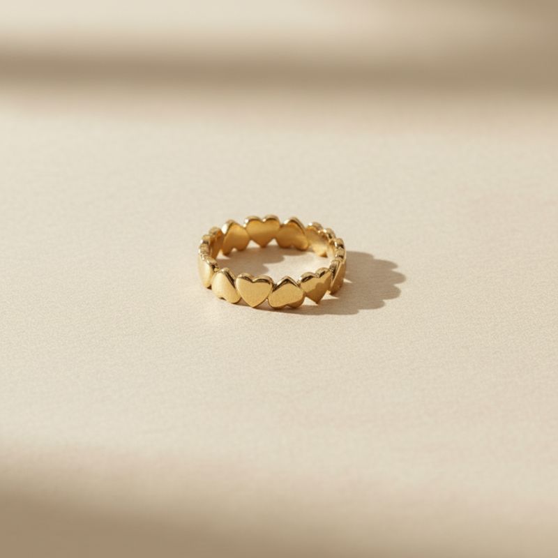 Bijou au motif intemporel, la bague cœur en plaqué or 18 carats séduit par son anneau délicatement cranté, orné de petits cœurs dorés qui captent joliment la lumière.