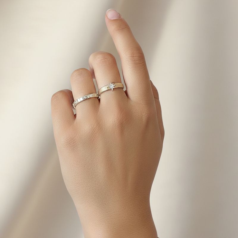 Un bijou au charme raffiné, inspiré de la petite joaillerie. Cette bague en plaqué or 18K – 5 microns séduit par son effet brossé finement strié, rehaussé d’une étoile délicate en oxyde de zirconium. Une alliance subtile entre éclat et texture pour un style tout en élégance.
