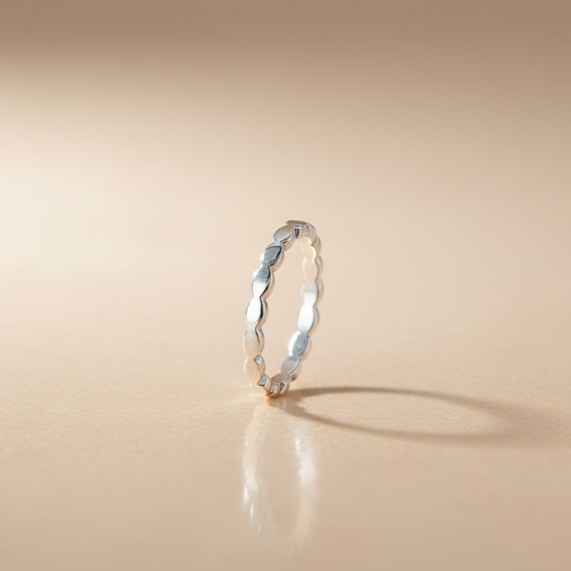Bague en Argent 925 rhodié : un anneau fin, délicatement dentelé, qui capte la lumière avec une élégance discrète. Vous allez aimer son charme minimaliste et son éclat tout doux, parfait à porter chaque jour.