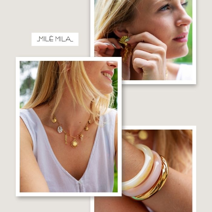 Ce que j’aime chez Milë Mila, c’est leur capacité à se renouveler tout en gardant leur identité. À chaque saison, ils sortent des nouveautés qu’on a envie de porter tout de suite : des boucles d’oreilles dorées, des colliers à breloques, des pierres naturelles, des détails fins…
