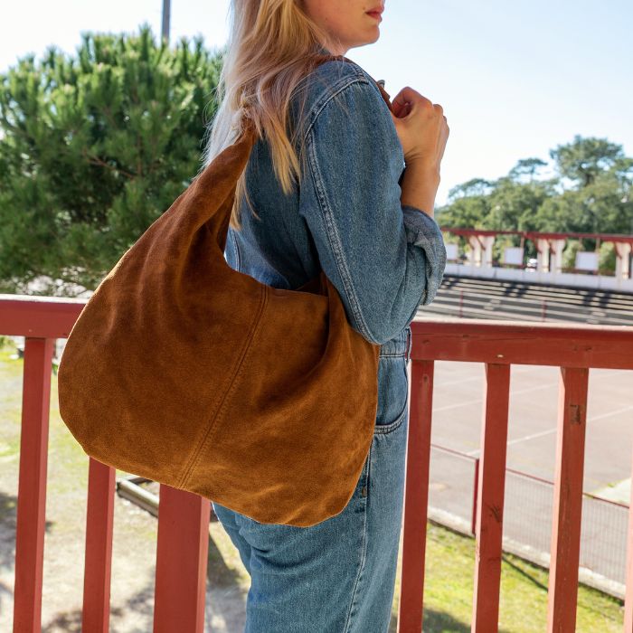 Sa coupe fluide, son format idéal et son daim souple en font un compagnon du quotidien, tout en douceur. Il dégage ce charme discret que l’on retrouve dans les pièces intemporelles, pensées pour durer et sublimer sans en faire trop.