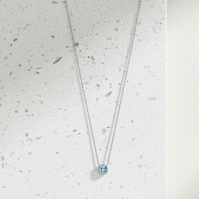 Collier argent pendentif carré aigue marine