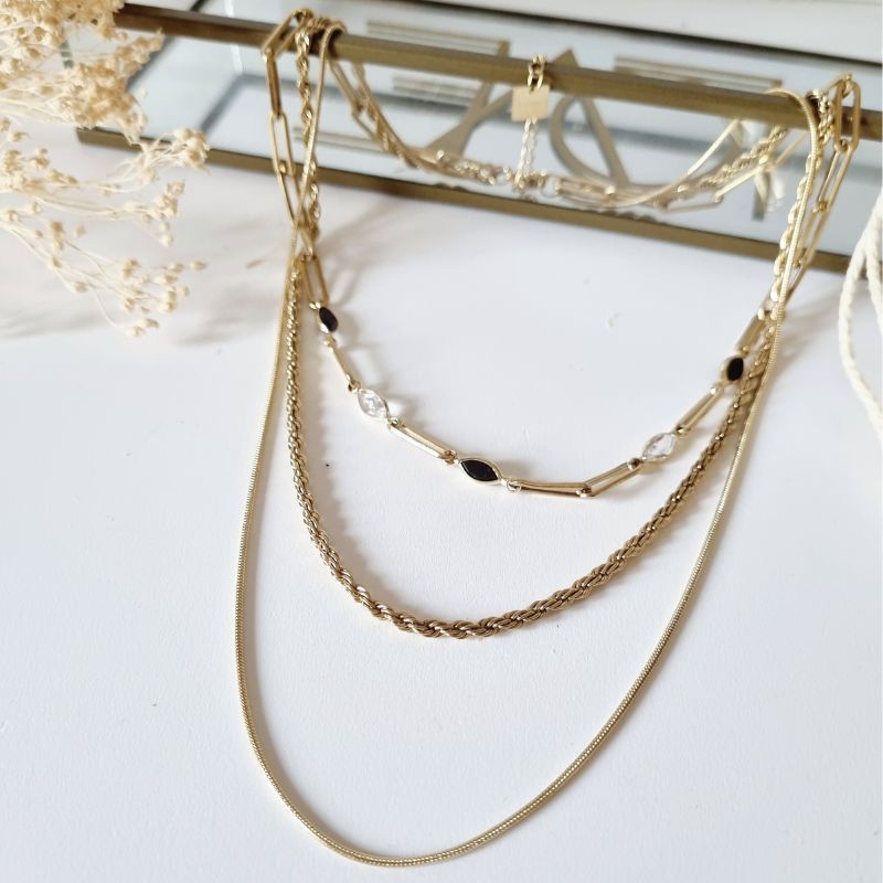Collier en acier inoxydable doré à l’or fin, composé d’un jeu de 3 mailles :