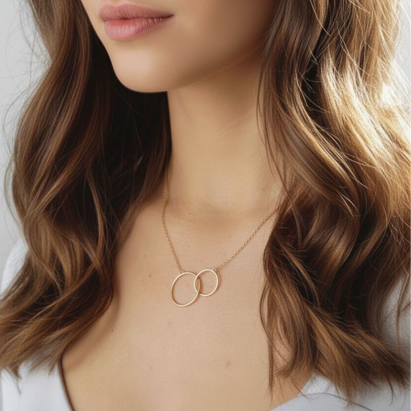 Composé d’une fine chaine ornée de cercles entrelacés, fin et délicat, ce collier symbolise l’union de 2 êtres, et représente l’amour inconditionnel.