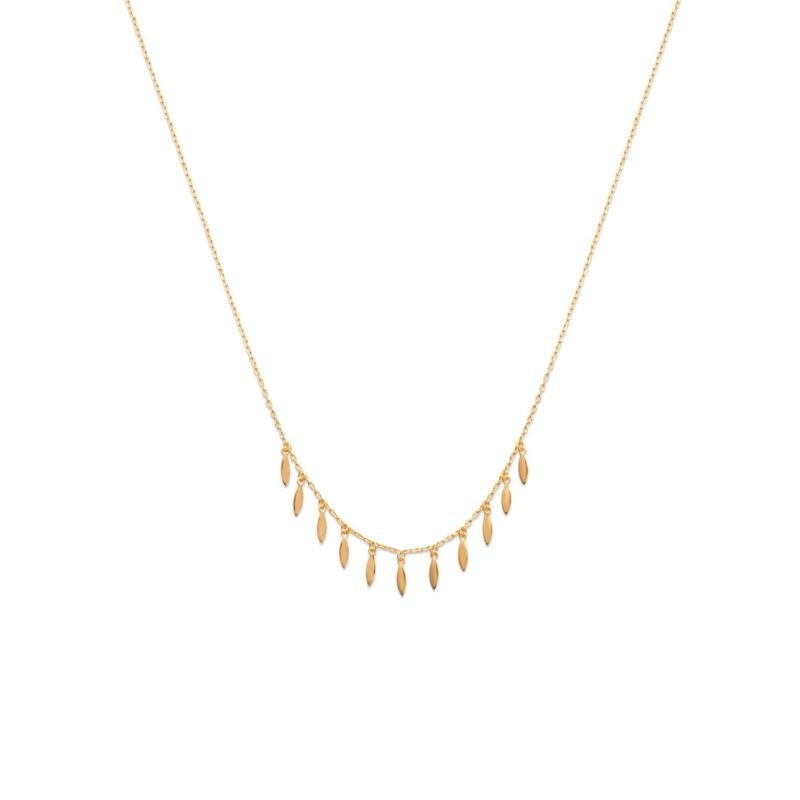 Délicat et raffiné, ce collier en plaqué or 18 carats séduit par son design léger et aérien. Sa fine chaîne est ornée de pampilles en forme de pétales, apportant une touche tendance et subtilement bohème à votre style.