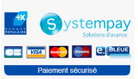 Nous acceptons les cartes VISA, MASTERCARD, CARTE BLEUE. Les paiements effectués par carte bancaire seront réalisés par le biais du système sécurisé SYSTEMPAY, système de paiement le plus sécurisé qui utilise le protocole TLS (cryptage de toutes informations liées à la carte) et soumises à de nombreux agréments (certification PCI DSS, agrément CB Cartes Bancaires, agrément Visa marchant agent…)