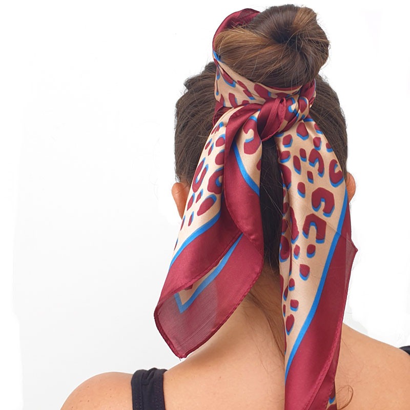 Les foulards se parent de la tendance léopard. Ce petit carré de satin s’adapte à tous les styles
