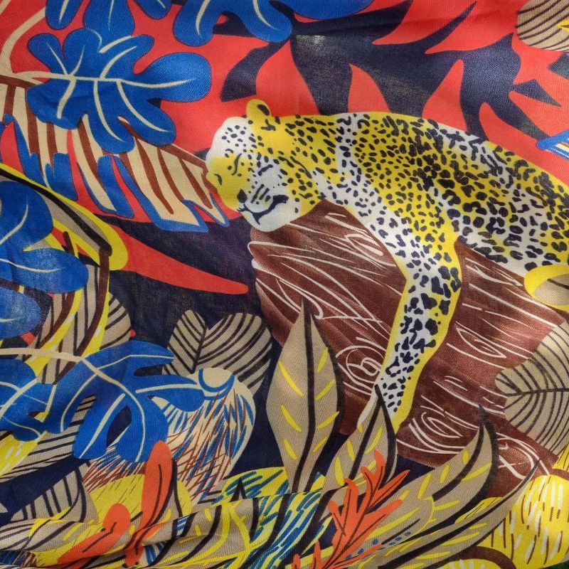 Étole « Carré Panthère sur son rocher – Création Palme Paris
