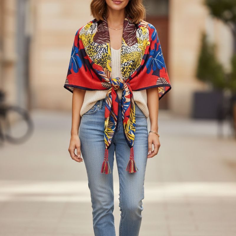 Parfait pour agrémenter vos tenues décontractées ou sophistiquées, ce carré combine style sophistiqué et chic sauvage.