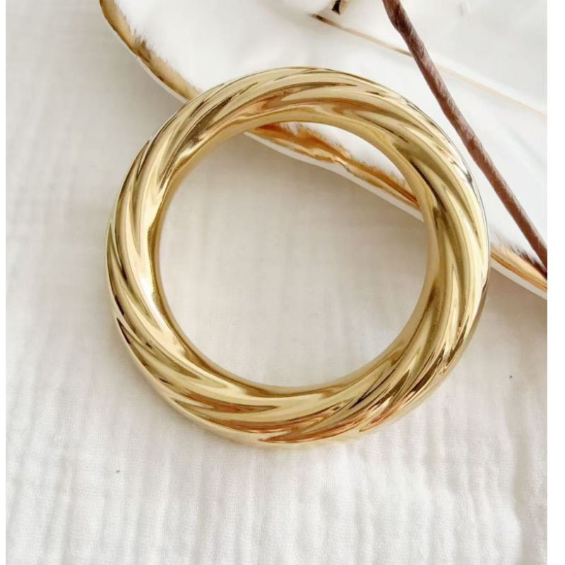 Le bracelet qui en impose sans en faire trop. Ce jonc doré à l’effet torsadé est une pièce forte et minimaliste, parfaite pour habiller un poignet en un clin d’œil. Porté seul, il apporte une touche élégante et assumée. Accumulé avec d’autres bracelets, il booste le style sans jamais alourdir la silhouette.