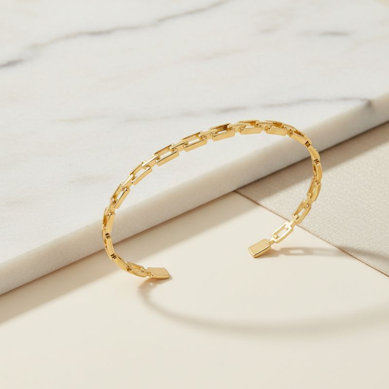 Semi ouvert, bracelet rigide composé de maillons de chaines fines
