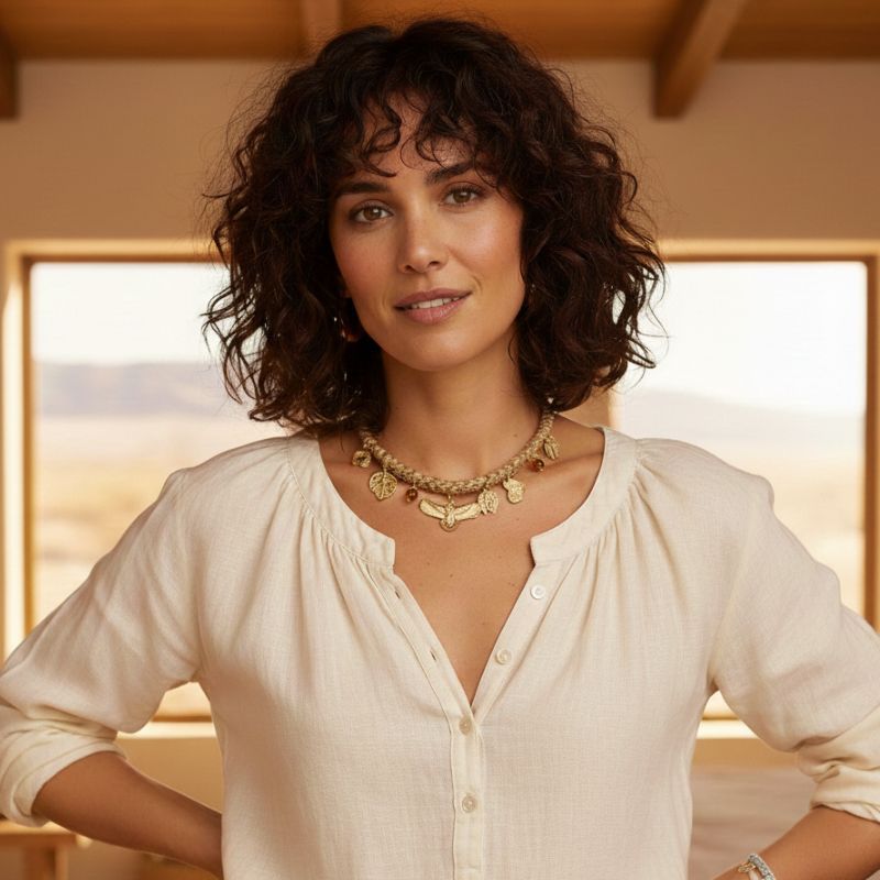 Son tressage doré lui donne ce twist unique qu’on adore. Une pièce solaire, pleine d’allure, qui apporte tout de suite une belle dose de caractère à vos looks.