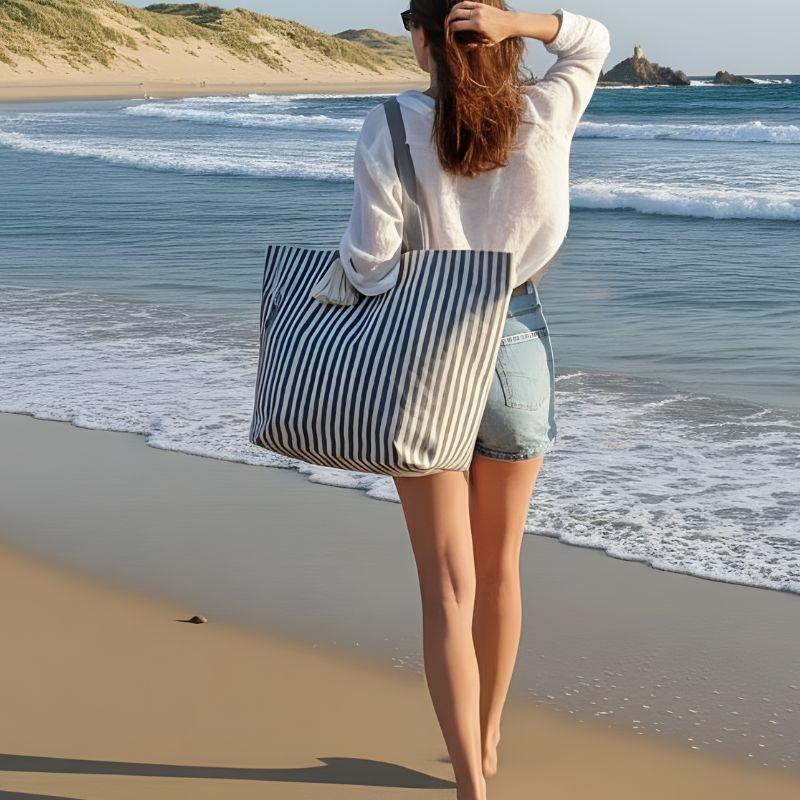 Solide, léger et pratique, ce sac de plage en coton vous accompagne aussi bien en solo qu’en famille.