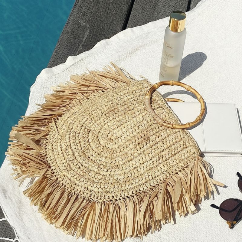 Avec ses anses rondes en bambou et sa finition à franges, il est aussi beau que pratique. Son format compact est idéal pour emporter l’essentiel…En ville ou en bord de mer, il vous suit partout avec légèreté.