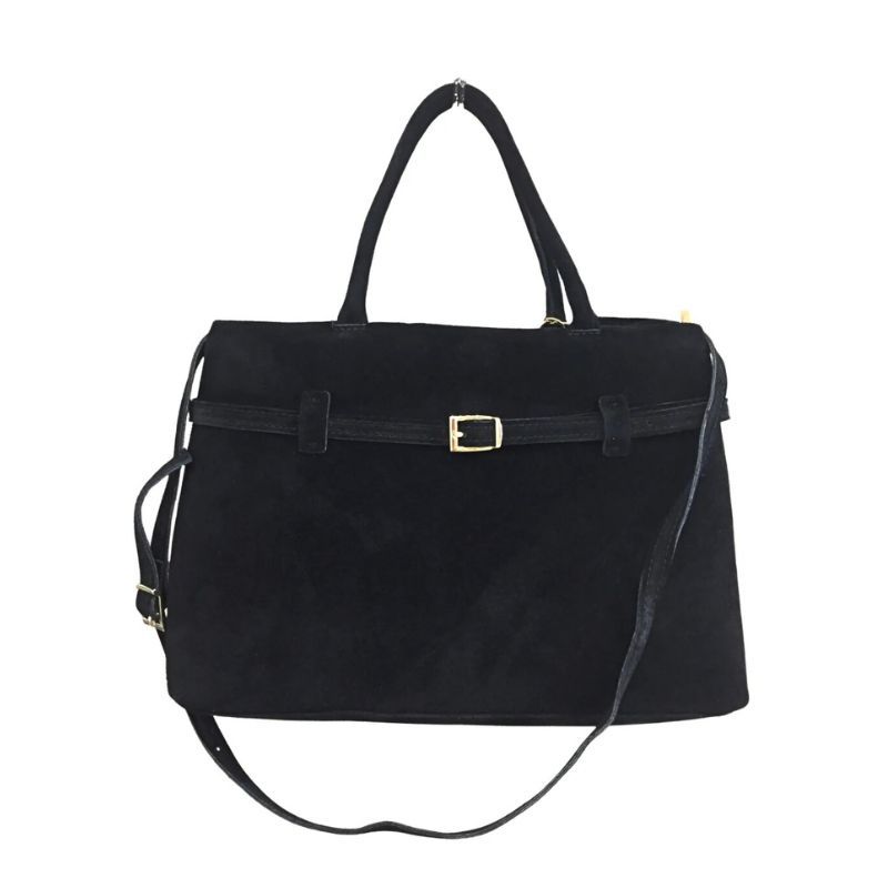 Avec son daim noir tout doux et son détail ceinture ultra chic, le sac Anaé en taille L coche toutes les cases : élégant, spacieux et facile à vivre au quotidien.